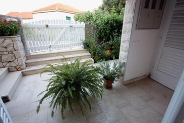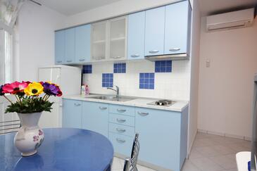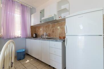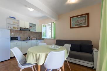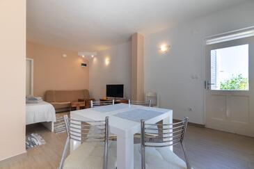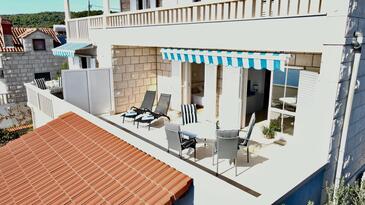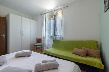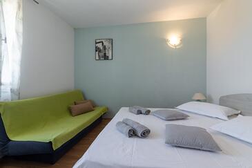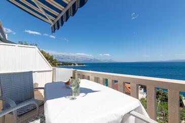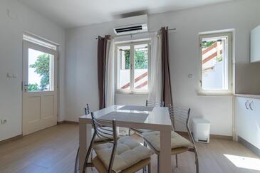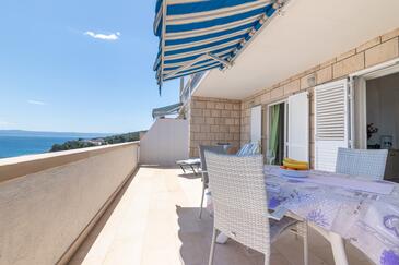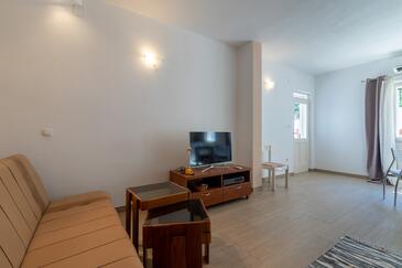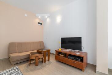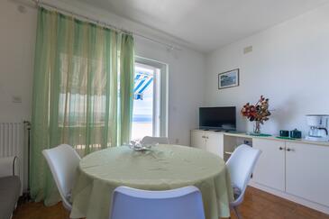 Ferienwohnung bietet Platz für 5 Gäste. Die Betten sind in Schlafzimmern, die es 2 gibt, und in Wohnzimmer, innerhalb einer Gesamtfläche von 40m2, angeordnet. Die Gäste haben eine eigene Terrasse zur Verfügung, auf der sie in warmen Sommernächten genießen können. Das Apartment bietet Meerblick. Es ist erlaubt, Speisen auf dem Gemeinschafts-Grill vorzubereiten.