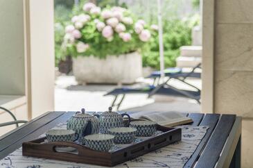 Haus bietet Platz für 7 Gäste. Die Betten sind in Schlafzimmern, die es 3 gibt, und in Wohnzimmer, innerhalb einer Gesamtfläche von 92m2, angeordnet. Die Gäste haben eine eigene Terrasse zur Verfügung, auf der sie in warmen Sommernächten genießen können. Das Haus bietet Meerblick. Für vollen Genuss und Entspannung gibt es einen privaten Grill für Gäste dieser Unterkunft. In der gebuchten Unterkunftseinheit zahlt man am Ort ein Depositum ( der Preis ist an der Internetseite angeführt ).