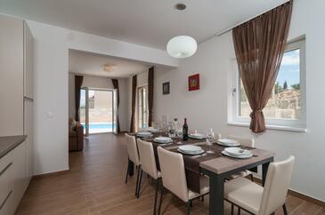 Haus bietet Platz für 8 Gäste. Die Betten sind in Schlafzimmern, die es 3 gibt, und in Wohnzimmer, innerhalb einer Gesamtfläche von 115m2, angeordnet. Die Gäste haben eine eigene Terrasse zur Verfügung, auf der sie in warmen Sommernächten genießen können. Das Haus bietet Meerblick. Für vollen Genuss und Entspannung gibt es einen privaten Grill für Gäste dieser Unterkunft. Während ihres Aufenthalts können sich Gäste im privaten Schwimmbad entspannen.