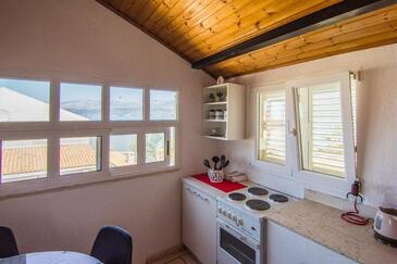 Ferienwohnung bietet Platz für 4 Gäste. Die Betten sind in Schlafzimmern, die es 2 gibt, innerhalb einer Gesamtfläche von 56m2, angeordnet. Die Gäste haben eine eigene Terrasse zur Verfügung, auf der sie in warmen Sommernächten genießen können. Das Apartment bietet Meerblick. Für vollen Genuss und Entspannung gibt es einen privaten Grill für Gäste dieser Unterkunft.