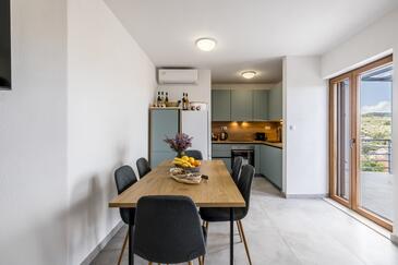 Ferienwohnung bietet Platz für 6 Gäste. Die Betten sind in Schlafzimmern, die es 3 gibt, innerhalb einer Gesamtfläche von 105m2, angeordnet. Die Gäste haben eine eigene Terrasse zur Verfügung, auf der sie in warmen Sommernächten genießen können. Das Apartment bietet Meerblick. Es ist erlaubt, Speisen auf dem Gemeinschafts-Grill vorzubereiten.
