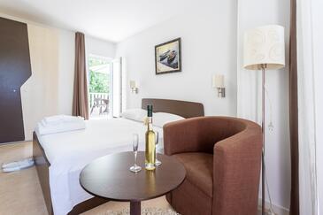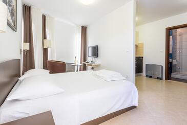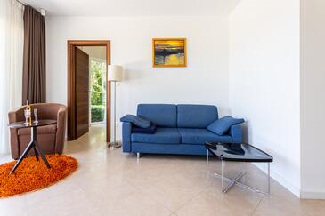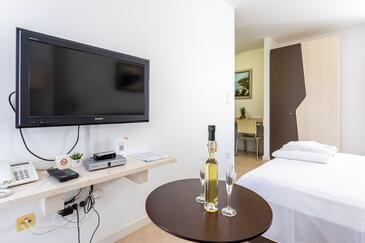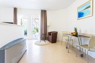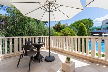 Ferienwohnung bietet Platz für 2 Gäste. Die Betten sind in Schlafzimmern, die es 2 gibt, innerhalb einer Gesamtfläche von 51m2, angeordnet. Die Gäste haben eine eigene Terrasse zur Verfügung, auf der sie in warmen Sommernächten genießen können. Das Apartment bietet Meerblick. Es ist erlaubt, Speisen auf dem Gemeinschafts-Grill vorzubereiten. Während ihres Aufenthalts können Gäste das gemeinsam zur Nutzung stehende Schwimmbad benutzen.