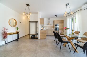 Haus bietet Platz für 16 Gäste. Die Betten sind in Schlafzimmern, die es 6 gibt, und in Wohnzimmer, innerhalb einer Gesamtfläche von 231m2, angeordnet. Die Gäste haben eine eigene Terrasse zur Verfügung, auf der sie in warmen Sommernächten genießen können. Das Haus bietet Meerblick. Für vollen Genuss und Entspannung gibt es einen privaten Grill für Gäste dieser Unterkunft. Während ihres Aufenthalts können sich Gäste im privaten Schwimmbad entspannen. In der Unterkunftseinheit besteht die Möglichkeit des Mitbringens von Haustieren gegen Aufpreis. Räume der gebuchten Unterkunftseinheit werden nicht in eine Ganze verbunden. In der gebuchten Unterkunftseinheit zahlt man am Ort ein Depositum ( der Preis ist an der Internetseite angeführt ).