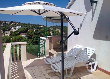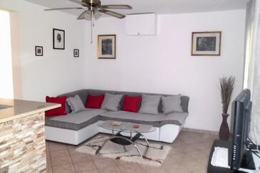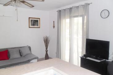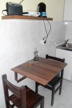 Ferienwohnung bietet Platz für 3 Gäste. Die Betten sind in Schlafzimmern, die es 1 gibt, innerhalb einer Gesamtfläche von 25m2, angeordnet. Die Gäste haben eine eigene Terrasse zur Verfügung, auf der sie in warmen Sommernächten genießen können. Das Apartment bietet Meerblick. Es ist erlaubt, Speisen auf dem Gemeinschafts-Grill vorzubereiten. In der Unterkunftseinheit besteht die Möglichkeit des Mitbringens von Haustieren gegen Aufpreis.