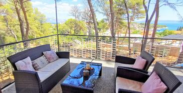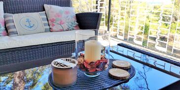 Haus bietet Platz für 6 Gäste. Die Betten sind in Schlafzimmern, die es 2 gibt, und in Wohnzimmer, innerhalb einer Gesamtfläche von 72m2, angeordnet. Die Gäste haben eine eigene Terrasse zur Verfügung, auf der sie in warmen Sommernächten genießen können. Das Haus bietet Meerblick. Es ist erlaubt, Speisen auf dem Gemeinschafts-Grill vorzubereiten.