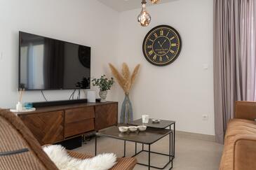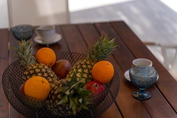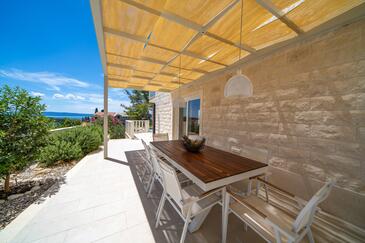 Haus bietet Platz für 8 Gäste. Die Betten sind in Schlafzimmern, die es 3 gibt, innerhalb einer Gesamtfläche von 125m2, angeordnet. Die Gäste haben eine eigene Terrasse zur Verfügung, auf der sie in warmen Sommernächten genießen können. Das Haus bietet Meerblick. Für vollen Genuss und Entspannung gibt es einen privaten Grill für Gäste dieser Unterkunft. Während ihres Aufenthalts können sich Gäste im privaten Schwimmbad entspannen. In der Unterkunftseinheit besteht die Möglichkeit des Mitbringens von Haustieren, und die Dienstleistung ist im Preis der Unterkunft enthalten.