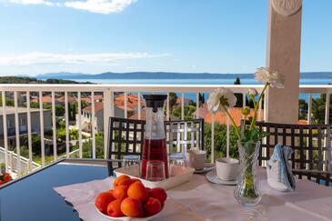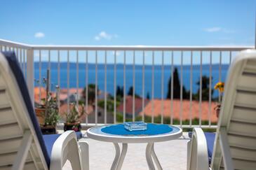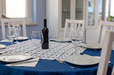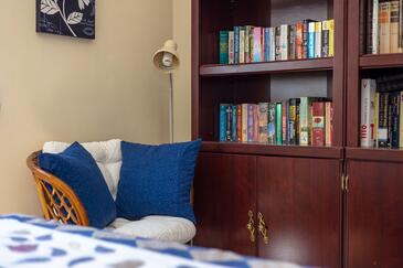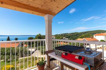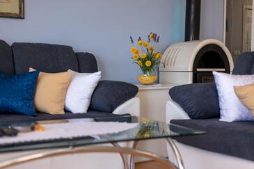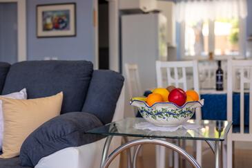 Ferienwohnung bietet Platz für 8 Gäste. Die Betten sind in Schlafzimmern, die es 3 gibt, und in Wohnzimmer, innerhalb einer Gesamtfläche von 99m2, angeordnet. Die Gäste haben eine eigene Terrasse zur Verfügung, auf der sie in warmen Sommernächten genießen können. Das Apartment bietet Meerblick. Es ist erlaubt, Speisen auf dem Gemeinschafts-Grill vorzubereiten.