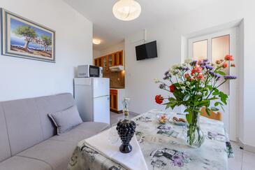 Ferienwohnung bietet Platz für 2 Gäste. Die Betten sind in Schlafzimmern, die es 1 gibt, innerhalb einer Gesamtfläche von 22m2, angeordnet. Das Apartment bietet Meerblick. Es ist erlaubt, Speisen auf dem Gemeinschafts-Grill vorzubereiten. Die reservierte Unterkunftseinheit verfügt über einen gemeinsame Terrasse.