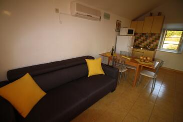 Ferienwohnung bietet Platz für 3 Gäste. Die Betten sind in Schlafzimmern, die es 1 gibt, und in Wohnzimmer, innerhalb einer Gesamtfläche von 47m2, angeordnet. Die Gäste haben eine eigene Terrasse zur Verfügung, auf der sie in warmen Sommernächten genießen können. Das Apartment bietet Meerblick.