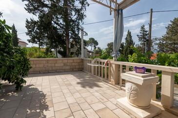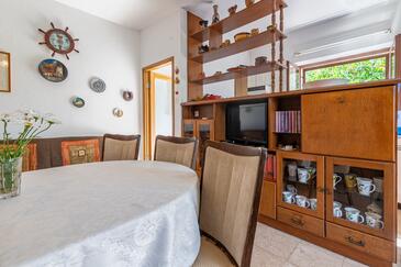 Ferienwohnung bietet Platz für 8 Gäste. Die Betten sind in Schlafzimmern, die es 3 gibt, und in Wohnzimmer, innerhalb einer Gesamtfläche von 90m2, angeordnet. Die Gäste haben eine eigene Terrasse zur Verfügung, auf der sie in warmen Sommernächten genießen können. Es ist erlaubt, Speisen auf dem Gemeinschafts-Grill vorzubereiten.