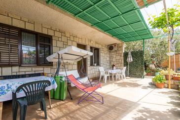 Ferienwohnung bietet Platz für 5 Gäste. Die Betten sind in Schlafzimmern, die es 2 gibt, und in Wohnzimmer, innerhalb einer Gesamtfläche von 53m2, angeordnet. Die Gäste haben eine eigene Terrasse zur Verfügung, auf der sie in warmen Sommernächten genießen können. Es ist erlaubt, Speisen auf dem Gemeinschafts-Grill vorzubereiten.