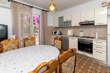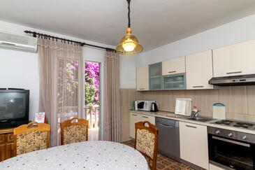 Ferienwohnung bietet Platz für 4 Gäste. Die Betten sind in Schlafzimmern, die es 2 gibt, innerhalb einer Gesamtfläche von 65m2, angeordnet. Die Gäste haben eine eigene Terrasse zur Verfügung, auf der sie in warmen Sommernächten genießen können. Es ist erlaubt, Speisen auf dem Gemeinschafts-Grill vorzubereiten. In der Unterkunftseinheit besteht die Möglichkeit des Mitbringens von Haustieren gegen Aufpreis.