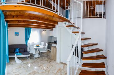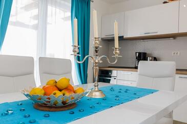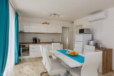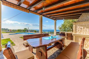 Haus bietet Platz für 10 Gäste. Die Betten sind in Schlafzimmern, die es 3 gibt, und in Wohnzimmer, innerhalb einer Gesamtfläche von 102m2, angeordnet. Die Gäste haben eine eigene Terrasse zur Verfügung, auf der sie in warmen Sommernächten genießen können. Das Haus bietet Meerblick. Für vollen Genuss und Entspannung gibt es einen privaten Grill für Gäste dieser Unterkunft. Während ihres Aufenthalts können sich Gäste im privaten Schwimmbad entspannen. In der Unterkunftseinheit besteht die Möglichkeit des Mitbringens von Haustieren gegen Aufpreis. Räume der gebuchten Unterkunftseinheit werden nicht in eine Ganze verbunden. Unterkunftseinheit hat Räume, die von dem Rest der Einheit abgetrennt werden. In der gebuchten Unterkunftseinheit zahlt man am Ort ein Depositum ( der Preis ist an der Internetseite angeführt ).