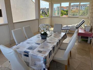 Ferienwohnung bietet Platz für 6 Gäste. Die Betten sind in Schlafzimmern, die es 3 gibt, innerhalb einer Gesamtfläche von 75m2, angeordnet. Die Gäste haben eine eigene Terrasse zur Verfügung, auf der sie in warmen Sommernächten genießen können. Das Apartment bietet Meerblick. Es ist erlaubt, Speisen auf dem Gemeinschafts-Grill vorzubereiten.