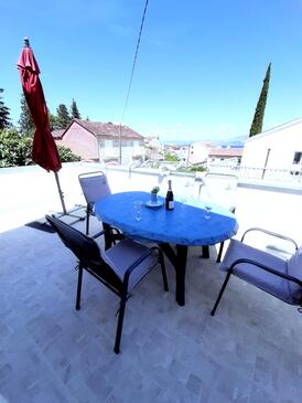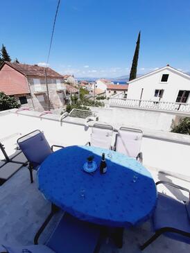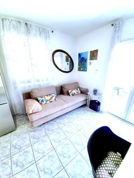 Ferienwohnung bietet Platz für 4 Gäste. Die Betten sind in Schlafzimmern, die es 2 gibt, innerhalb einer Gesamtfläche von 50m2, angeordnet. Die Gäste haben eine eigene Terrasse zur Verfügung, auf der sie in warmen Sommernächten genießen können. Das Apartment bietet Meerblick. Es ist erlaubt, Speisen auf dem Gemeinschafts-Grill vorzubereiten.