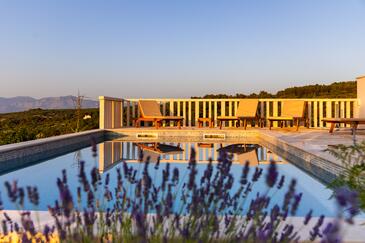 Haus bietet Platz für 6 Gäste. Die Betten sind in Schlafzimmern, die es 2 gibt, und in Wohnzimmer, innerhalb einer Gesamtfläche von 92m2, angeordnet. Die Gäste haben eine eigene Terrasse zur Verfügung, auf der sie in warmen Sommernächten genießen können. Das Haus bietet Meerblick. Für vollen Genuss und Entspannung gibt es einen privaten Grill für Gäste dieser Unterkunft. Während ihres Aufenthalts können sich Gäste im privaten Schwimmbad entspannen. In der Unterkunftseinheit besteht die Möglichkeit des Mitbringens von Haustieren gegen Aufpreis. Räume der gebuchten Unterkunftseinheit werden nicht in eine Ganze verbunden.