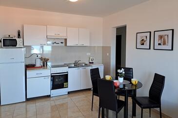 Ferienwohnung bietet Platz für 5 Gäste. Die Betten sind in Schlafzimmern, die es 2 gibt, und in Wohnzimmer, innerhalb einer Gesamtfläche von 45m2, angeordnet. Die Gäste haben einen eigenen Balkon zur Verfügung, auf der sie in warmen Sommernächten genießen können. Das Apartment bietet Meerblick.