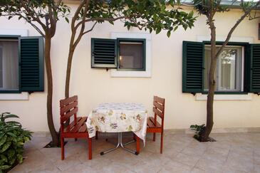 Ferienwohnung bietet Platz für 3 Gäste. Die Betten sind in Schlafzimmern, die es 1 gibt, innerhalb einer Gesamtfläche von 34m2, angeordnet. Die Gäste haben eine eigene Terrasse zur Verfügung, auf der sie in warmen Sommernächten genießen können.
