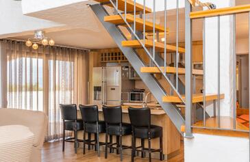 Haus bietet Platz für 7 Gäste. Die Betten sind in Schlafzimmern, die es 4 gibt, innerhalb einer Gesamtfläche von 115m2, angeordnet. Die Gäste haben eine eigene Terrasse zur Verfügung, auf der sie in warmen Sommernächten genießen können. Das Haus bietet Meerblick. Für vollen Genuss und Entspannung gibt es einen privaten Grill für Gäste dieser Unterkunft. Während ihres Aufenthalts können sich Gäste im privaten Schwimmbad entspannen.