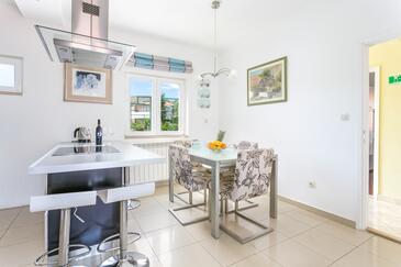 Ferienwohnung bietet Platz für 4 Gäste. Die Betten sind in Schlafzimmern, die es 2 gibt, innerhalb einer Gesamtfläche von 50m2, angeordnet. Die Gäste haben eine eigene Terrasse zur Verfügung, auf der sie in warmen Sommernächten genießen können. Es ist erlaubt, Speisen auf dem Gemeinschafts-Grill vorzubereiten.