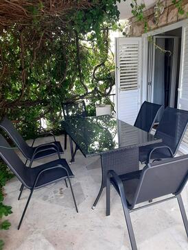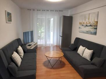 Ferienwohnung bietet Platz für 8 Gäste. Die Betten sind in Schlafzimmern, die es 4 gibt, innerhalb einer Gesamtfläche von 110m2, angeordnet. Die Gäste haben eine eigene Terrasse zur Verfügung, auf der sie in warmen Sommernächten genießen können. Das Apartment bietet Meerblick. Es ist erlaubt, Speisen auf dem Gemeinschafts-Grill vorzubereiten. In der Unterkunftseinheit besteht die Möglichkeit des Mitbringens von Haustieren, und die Dienstleistung ist im Preis der Unterkunft enthalten.