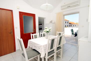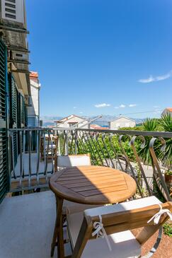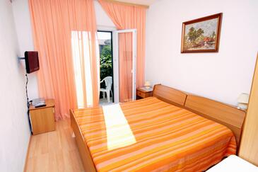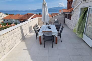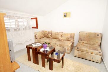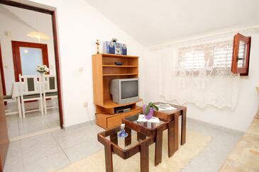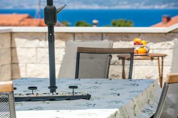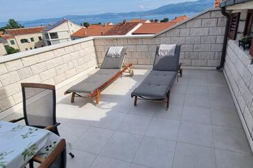 Ferienwohnung bietet Platz für 6 Gäste. Die Betten sind in Schlafzimmern, die es 2 gibt, und in Wohnzimmer, innerhalb einer Gesamtfläche von 57m2, angeordnet. Die Gäste haben eine eigene Terrasse zur Verfügung, auf der sie in warmen Sommernächten genießen können. Das Apartment bietet Meerblick. Es ist erlaubt, Speisen auf dem Gemeinschafts-Grill vorzubereiten.