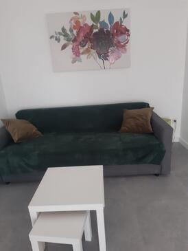 Ferienwohnung bietet Platz für 6 Gäste. Die Betten sind in Schlafzimmern, die es 2 gibt, und in Wohnzimmer, innerhalb einer Gesamtfläche von 68m2, angeordnet. Die Gäste haben eine eigene Terrasse zur Verfügung, auf der sie in warmen Sommernächten genießen können. Es ist erlaubt, Speisen auf dem Gemeinschafts-Grill vorzubereiten. In der Unterkunftseinheit besteht die Möglichkeit des Mitbringens von Haustieren gegen Aufpreis.