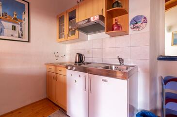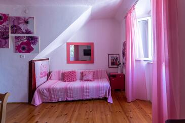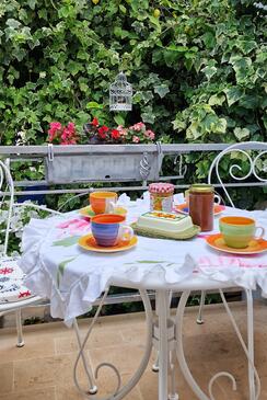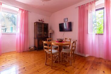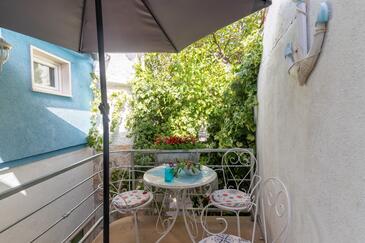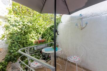 Ferienwohnung bietet Platz für 4 Gäste. Die Betten sind in Schlafzimmern, die es 2 gibt, innerhalb einer Gesamtfläche von 64m2, angeordnet. Die Gäste haben eine eigene Terrasse zur Verfügung, auf der sie in warmen Sommernächten genießen können. Es ist erlaubt, Speisen auf dem Gemeinschafts-Grill vorzubereiten.