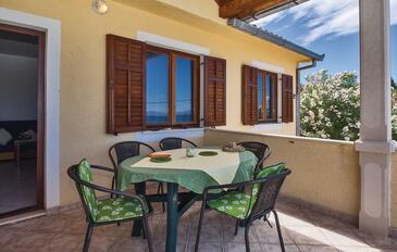 Ferienwohnung bietet Platz für 5 Gäste. Die Betten sind in Schlafzimmern, die es 2 gibt, innerhalb einer Gesamtfläche von 63m2, angeordnet. Die Gäste haben eine eigene Terrasse zur Verfügung, auf der sie in warmen Sommernächten genießen können. Das Apartment bietet Meerblick. Es ist erlaubt, Speisen auf dem Gemeinschafts-Grill vorzubereiten.
