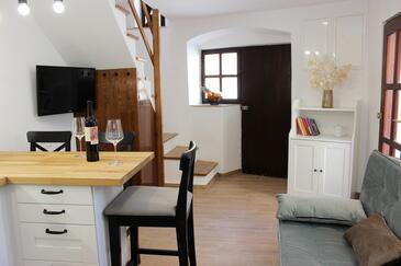 Studio bietet Platz für 3 Gäste. Die Betten sind in Schlafzimmern, die es 1 gibt, und in Wohnzimmer, innerhalb einer Gesamtfläche von 38m2, angeordnet. Die Gäste haben einen eigenen Balkon zur Verfügung, auf der sie in warmen Sommernächten genießen können. In der Unterkunftseinheit besteht die Möglichkeit des Mitbringens von Haustieren gegen Aufpreis.