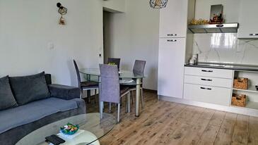 Ferienwohnung bietet Platz für 5 Gäste. Die Betten sind in Schlafzimmern, die es 1 gibt, und in Wohnzimmer, innerhalb einer Gesamtfläche von 55m2, angeordnet. Die Gäste haben eine eigene Terrasse zur Verfügung, auf der sie in warmen Sommernächten genießen können. Es ist erlaubt, Speisen auf dem Gemeinschafts-Grill vorzubereiten. In der Unterkunftseinheit besteht die Möglichkeit des Mitbringens von Haustieren gegen Aufpreis.