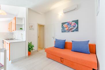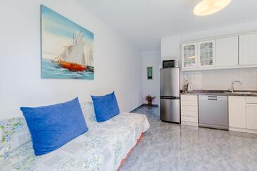 Ferienwohnung bietet Platz für 4 Gäste. Die Betten sind in Schlafzimmern, die es 1 gibt, und in Wohnzimmer, innerhalb einer Gesamtfläche von 33m2, angeordnet. Die Gäste haben eine eigene Terrasse zur Verfügung, auf der sie in warmen Sommernächten genießen können. Es ist erlaubt, Speisen auf dem Gemeinschafts-Grill vorzubereiten. In der Unterkunftseinheit besteht die Möglichkeit des Mitbringens von Haustieren gegen Aufpreis.