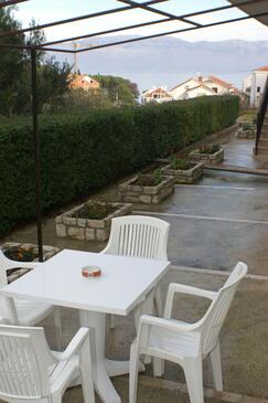 Ferienwohnung bietet Platz für 10 Gäste. Die Betten sind in Schlafzimmern, die es 5 gibt, innerhalb einer Gesamtfläche von 98m2, angeordnet. Die Gäste haben eine eigene Terrasse zur Verfügung, auf der sie in warmen Sommernächten genießen können. Das Apartment bietet Meerblick. Es ist erlaubt, Speisen auf dem Gemeinschafts-Grill vorzubereiten.