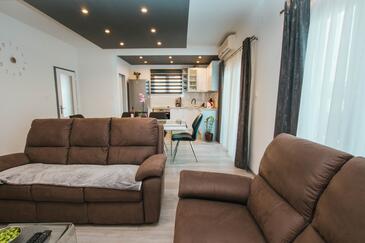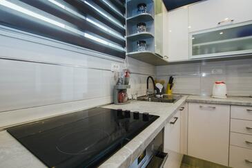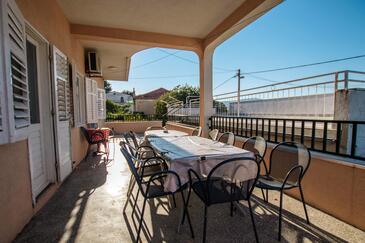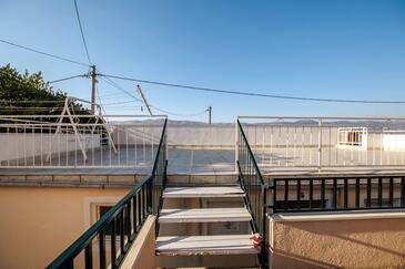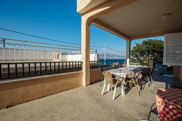 Ferienwohnung bietet Platz für 8 Gäste. Die Betten sind in Schlafzimmern, die es 4 gibt, innerhalb einer Gesamtfläche von 108m2, angeordnet. Die Gäste haben eine eigene Terrasse zur Verfügung, auf der sie in warmen Sommernächten genießen können. Das Apartment bietet Meerblick. Es ist erlaubt, Speisen auf dem Gemeinschafts-Grill vorzubereiten.