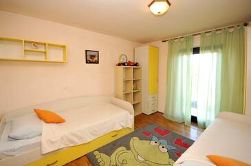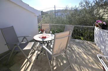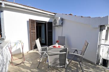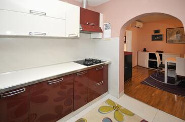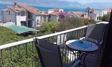 Ferienwohnung bietet Platz für 6 Gäste. Die Betten sind in Schlafzimmern, die es 3 gibt, innerhalb einer Gesamtfläche von 95m2, angeordnet. Die Gäste haben eine eigene Terrasse zur Verfügung, auf der sie in warmen Sommernächten genießen können. Das Apartment bietet Meerblick. Es ist erlaubt, Speisen auf dem Gemeinschafts-Grill vorzubereiten.