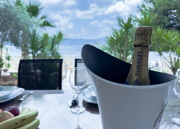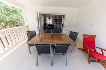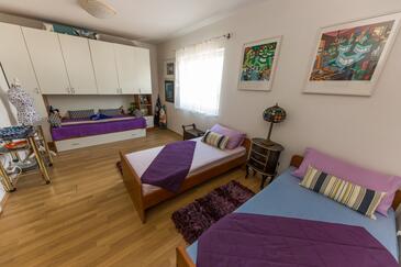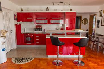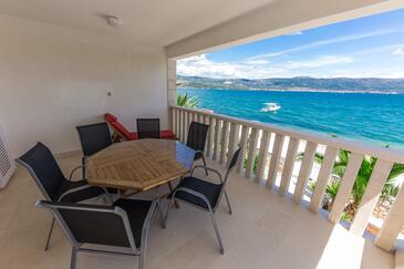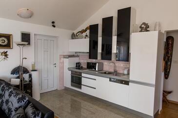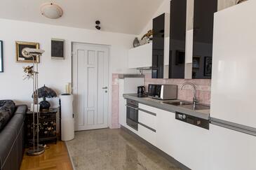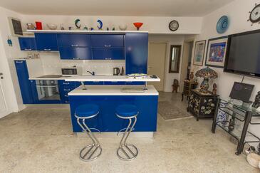 Ferienwohnung bietet Platz für 5 Gäste. Die Betten sind in Schlafzimmern, die es 2 gibt, innerhalb einer Gesamtfläche von 85m2, angeordnet. Die Gäste haben eine eigene Terrasse zur Verfügung, auf der sie in warmen Sommernächten genießen können. Das Apartment bietet Meerblick. Es ist erlaubt, Speisen auf dem Gemeinschafts-Grill vorzubereiten. In der gebuchten Unterkunftseinheit zahlt man am Ort ein Depositum ( der Preis ist an der Internetseite angeführt ).