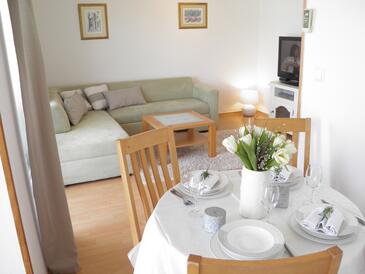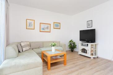 Ferienwohnung bietet Platz für 6 Gäste. Die Betten sind in Schlafzimmern, die es 2 gibt, und in Wohnzimmer, innerhalb einer Gesamtfläche von 42m2, angeordnet. Die Gäste haben einen eigenen Balkon zur Verfügung, auf der sie in warmen Sommernächten genießen können. Das Apartment bietet Meerblick. Es ist erlaubt, Speisen auf dem Gemeinschafts-Grill vorzubereiten. In der Unterkunftseinheit besteht die Möglichkeit des Mitbringens von Haustieren gegen Aufpreis.