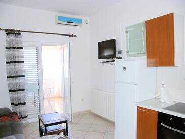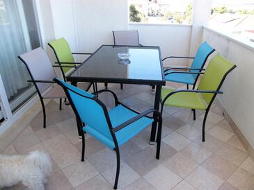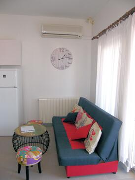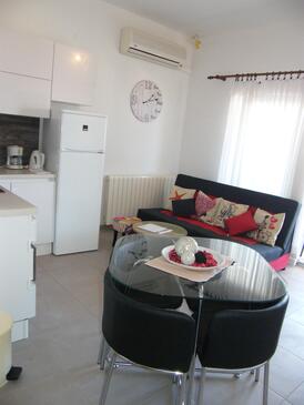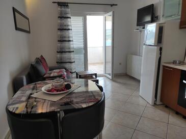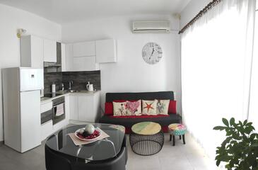 Ferienwohnung bietet Platz für 5 Gäste. Die Betten sind in Schlafzimmern, die es 2 gibt, innerhalb einer Gesamtfläche von 45m2, angeordnet. Die Gäste haben eine eigene Terrasse zur Verfügung, auf der sie in warmen Sommernächten genießen können. Das Apartment bietet Meerblick. Es ist erlaubt, Speisen auf dem Gemeinschafts-Grill vorzubereiten. Während ihres Aufenthalts können Gäste das gemeinsam zur Nutzung stehende Schwimmbad benutzen. In der Unterkunftseinheit besteht die Möglichkeit des Mitbringens von Haustieren gegen Aufpreis.