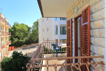 Ferienwohnung bietet Platz für 6 Gäste. Die Betten sind in Schlafzimmern, die es 3 gibt, innerhalb einer Gesamtfläche von 78m2, angeordnet. Die Gäste haben einen eigenen Balkon zur Verfügung, auf der sie in warmen Sommernächten genießen können. Das Apartment bietet Meerblick.