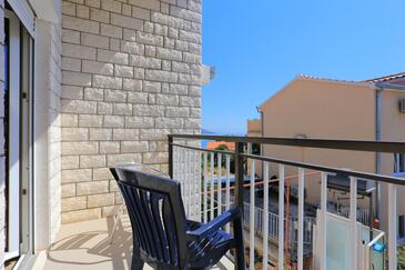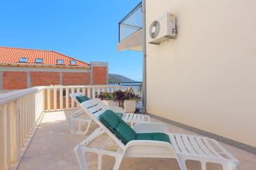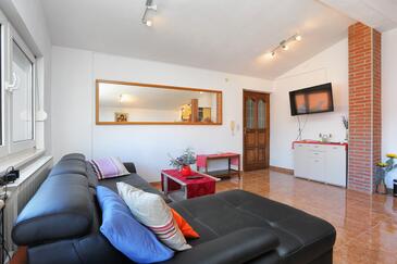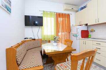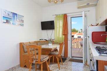 Ferienwohnung bietet Platz für 5 Gäste. Die Betten sind in Schlafzimmern, die es 1 gibt, und in Wohnzimmer, innerhalb einer Gesamtfläche von 60m2, angeordnet. Die Gäste haben eine eigene Terrasse zur Verfügung, auf der sie in warmen Sommernächten genießen können. Das Apartment bietet Meerblick. Es ist erlaubt, Speisen auf dem Gemeinschafts-Grill vorzubereiten. In der Unterkunftseinheit besteht die Möglichkeit des Mitbringens von Haustieren gegen Aufpreis.
