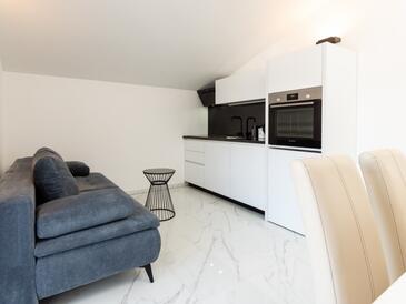 Ferienwohnung bietet Platz für 3 Gäste. Die Betten sind in Schlafzimmern, die es 1 gibt, und in Wohnzimmer, innerhalb einer Gesamtfläche von 40m2, angeordnet. Die Gäste haben einen eigenen Balkon zur Verfügung, auf der sie in warmen Sommernächten genießen können. Das Apartment bietet Meerblick. Es ist erlaubt, Speisen auf dem Gemeinschafts-Grill vorzubereiten.