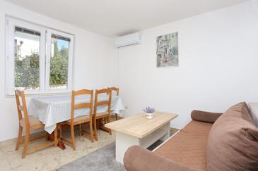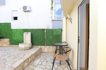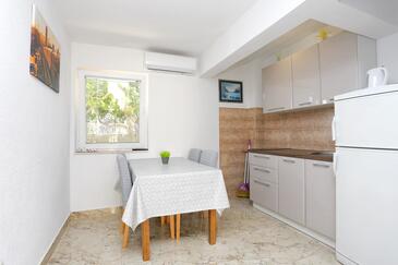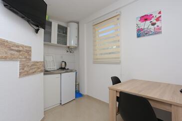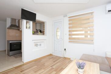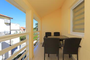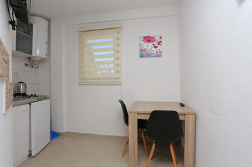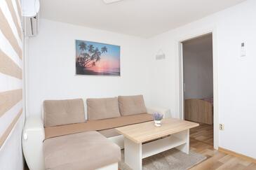Ferienwohnung bietet Platz für 5 Gäste. Die Betten sind in Schlafzimmern, die es 2 gibt, und in Wohnzimmer, innerhalb einer Gesamtfläche von 44m2, angeordnet. Die Gäste haben einen eigenen Balkon zur Verfügung, auf der sie in warmen Sommernächten genießen können. Das Apartment bietet Meerblick. Es ist erlaubt, Speisen auf dem Gemeinschafts-Grill vorzubereiten.