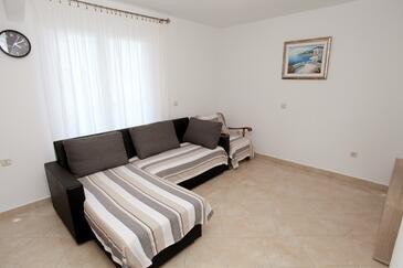 Ferienwohnung bietet Platz für 2 Gäste. Die Betten sind in Schlafzimmern, die es 1 gibt, innerhalb einer Gesamtfläche von 36m2, angeordnet. Die Gäste haben eine eigene Terrasse zur Verfügung, auf der sie in warmen Sommernächten genießen können. Das Apartment bietet Meerblick. Es ist erlaubt, Speisen auf dem Gemeinschafts-Grill vorzubereiten.