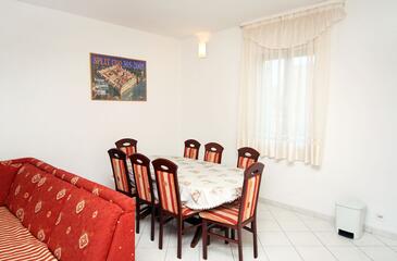 Ferienwohnung bietet Platz für 6 Gäste. Die Betten sind in Schlafzimmern, die es 3 gibt, innerhalb einer Gesamtfläche von 74m2, angeordnet. Die Gäste haben eine eigene Terrasse zur Verfügung, auf der sie in warmen Sommernächten genießen können. Das Apartment bietet Meerblick. Es ist erlaubt, Speisen auf dem Gemeinschafts-Grill vorzubereiten. In der Unterkunftseinheit besteht die Möglichkeit des Mitbringens von Haustieren, und die Dienstleistung ist im Preis der Unterkunft enthalten.