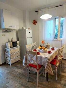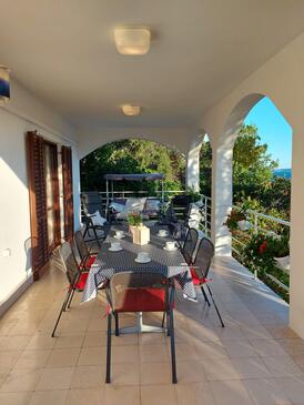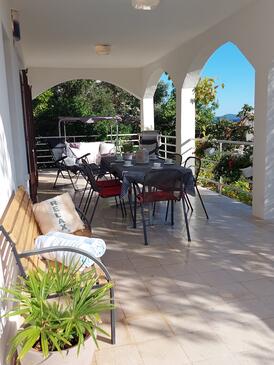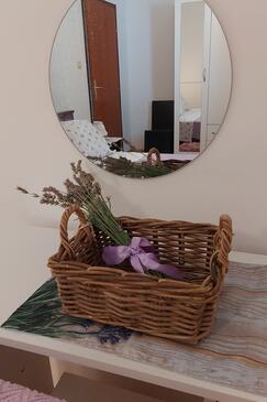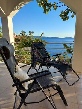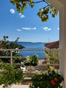 Ferienwohnung bietet Platz für 5 Gäste. Die Betten sind in Schlafzimmern, die es 3 gibt, innerhalb einer Gesamtfläche von 60m2, angeordnet. Die Gäste haben eine eigene Terrasse zur Verfügung, auf der sie in warmen Sommernächten genießen können. Das Apartment bietet Meerblick. Es ist erlaubt, Speisen auf dem Gemeinschafts-Grill vorzubereiten.