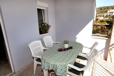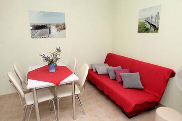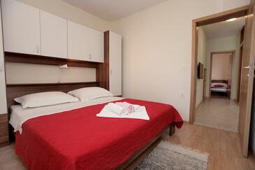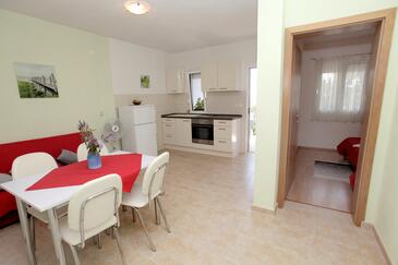 Ferienwohnung bietet Platz für 4 Gäste. Die Betten sind in Schlafzimmern, die es 2 gibt, innerhalb einer Gesamtfläche von 44m2, angeordnet. Die Gäste haben eine eigene Terrasse zur Verfügung, auf der sie in warmen Sommernächten genießen können. Das Apartment bietet Meerblick. Es ist erlaubt, Speisen auf dem Gemeinschafts-Grill vorzubereiten.