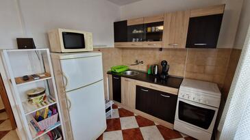 Ferienwohnung bietet Platz für 5 Gäste. Die Betten sind in Schlafzimmern, die es 2 gibt, und in Esszimmer, innerhalb einer Gesamtfläche von 42m2, angeordnet. Die Gäste haben einen eigenen Balkon zur Verfügung, auf der sie in warmen Sommernächten genießen können. Das Apartment bietet Meerblick. Es ist erlaubt, Speisen auf dem Gemeinschafts-Grill vorzubereiten.