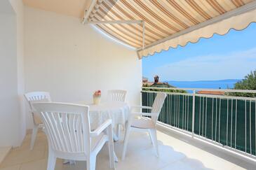 Ferienwohnung bietet Platz für 2 Gäste. Die Betten sind in Schlafzimmern, die es 1 gibt, innerhalb einer Gesamtfläche von 26m2, angeordnet. Die Gäste haben eine eigene Terrasse zur Verfügung, auf der sie in warmen Sommernächten genießen können. Das Apartment bietet Meerblick. Es ist erlaubt, Speisen auf dem Gemeinschafts-Grill vorzubereiten.