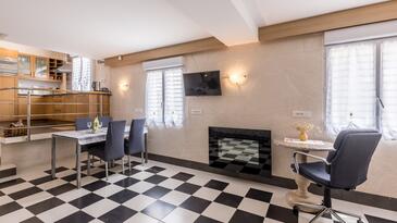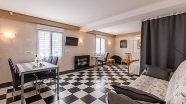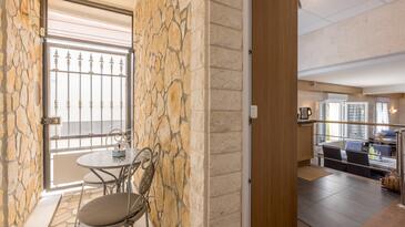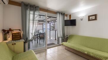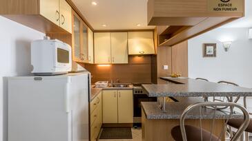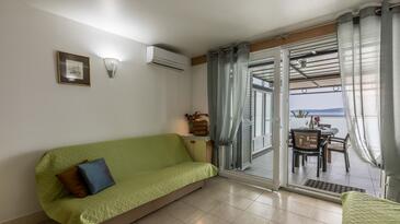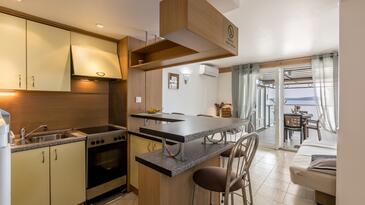Ferienwohnung bietet Platz für 4 Gäste. Die Betten sind in Schlafzimmern, die es 1 gibt, und in Wohnzimmer, innerhalb einer Gesamtfläche von 49m2, angeordnet. Die Gäste haben eine eigene Terrasse zur Verfügung, auf der sie in warmen Sommernächten genießen können. Das Apartment bietet Meerblick. Es ist erlaubt, Speisen auf dem Gemeinschafts-Grill vorzubereiten.