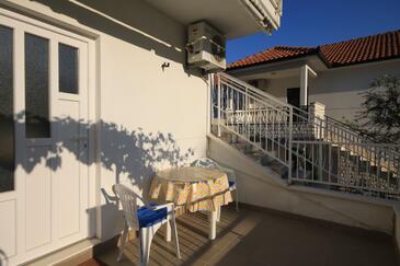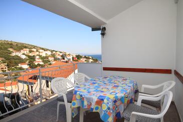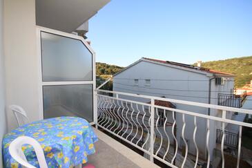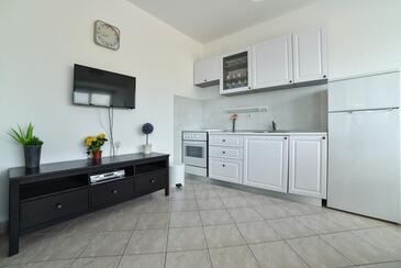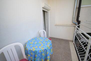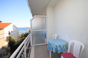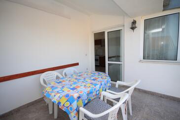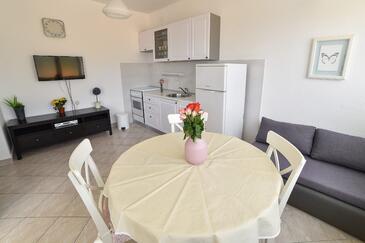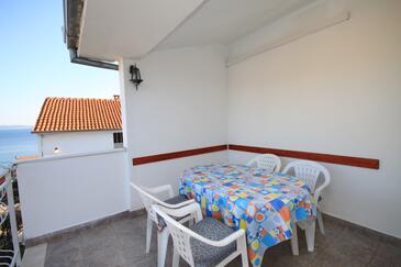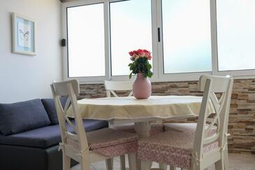 Ferienwohnung bietet Platz für 5 Gäste. Die Betten sind in Schlafzimmern, die es 2 gibt, und in Esszimmer, innerhalb einer Gesamtfläche von 45m2, angeordnet. Die Gäste haben eine eigene Terrasse zur Verfügung, auf der sie in warmen Sommernächten genießen können. Das Apartment bietet Meerblick. Es ist erlaubt, Speisen auf dem Gemeinschafts-Grill vorzubereiten.